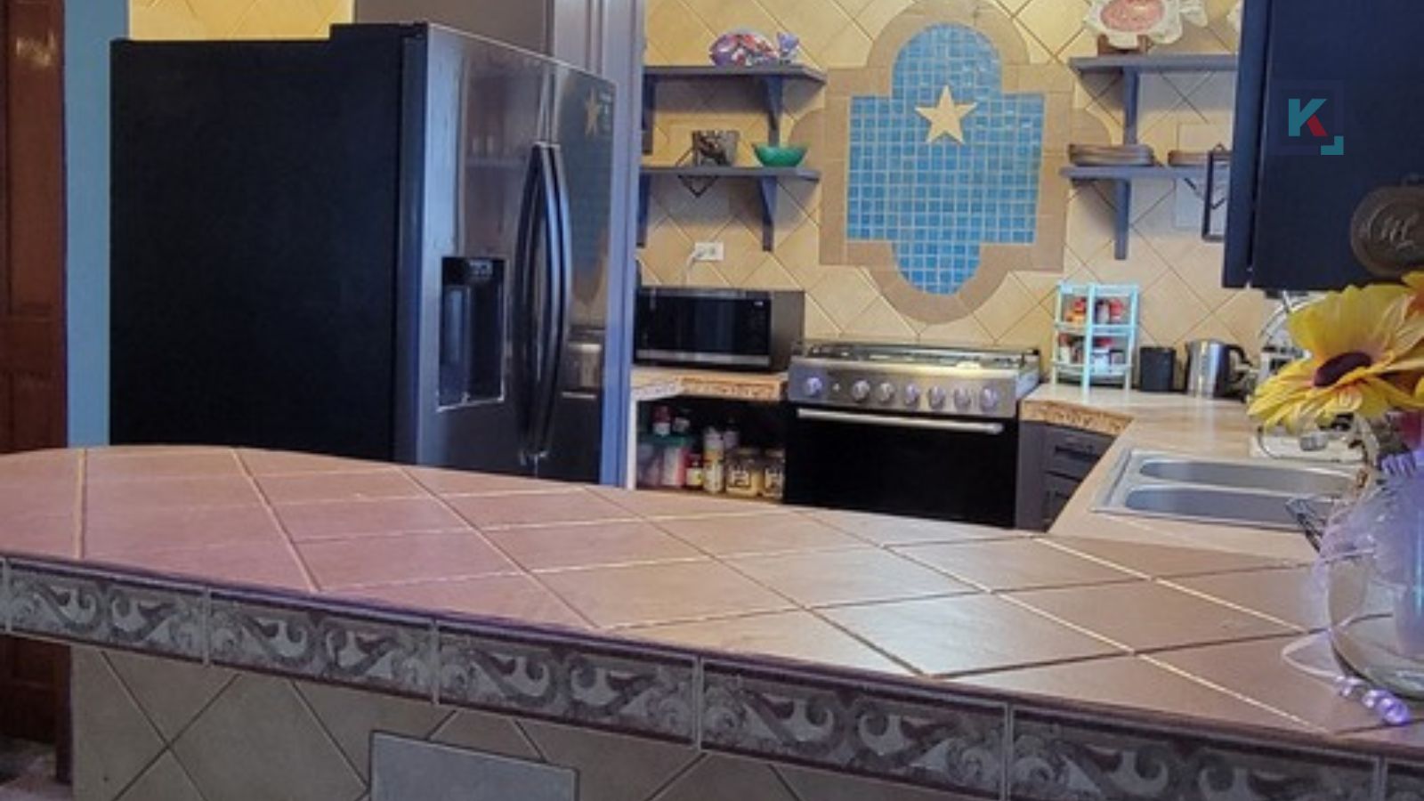 Outside, Casa Mar Azul offers parking space for two vehicles, and a refreshing swimming pool with an additional full bathroom in the pool area, making it perfect for entertaining or enjoying sunny days at home.
