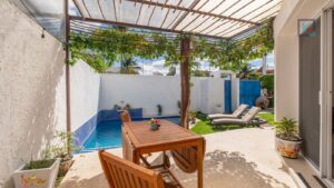 Out front, the home invites you to enjoy island living with a private terrace and swimming pool, perfect for morning coffee, afternoon swims, or relaxed evenings outdoors. There is also off-street parking for one vehicle.